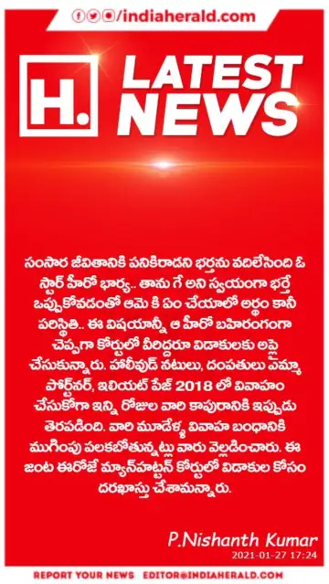 సంసార జీవితానికి పనికిరాడని భర్తను వదిలేసింది ఓ స్టార్ హీరో భార్య.. తాను గే అని స్వయంగా భర్తే ఒప్పుకోవడంతో ఆమె కి ఏం చేయాలో అర్థం కానీ పరిస్థితి.. ఈ విషయాన్నీ ఆ హీరో బహిరంగంగా చెప్పగా కోర్టులో వీరిద్దరూ విడాకులకు అప్లై చేసుకున్నారు. హాలీవుడ్ నటులు, దంపతులు ఎమ్మా పోర్ట్నర్, ఇలియట్ పేజ్ 2018 లో వివాహం చేసుకోగా ఇన్ని రోజుల వారి కాపురానికి ఇప్పుడు తెరపడింది. వారి మూడేళ్ళ వివాహ బంధానికి ముగింపు పలకబోతున్నట్లు వారు వెల్లడించారు. ఈ జంట ఈరోజే మ్యాన్హట్టన్ కోర్టులో విడాకుల కోసం దరఖాస్తు చేశామన్నారు.