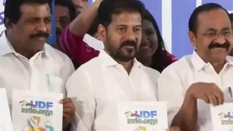 కేరళలో యూడీఎఫ్ ఎన్నికల మ్యానిఫేస్టోను తెలంగాణ ముఖ్యమంత్రి రేవంత్ రెడ్డి విడుదల చేశారు. ముఖ్యమంత్రి రేవంత్ రెడ్డి యూడీఎఫ్ మ్యానిఫేస్టోను ప్రతిపక్ష నేత వి.డి.
