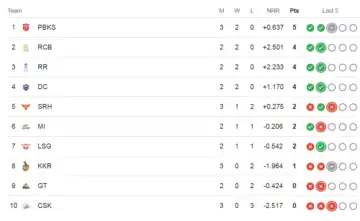 ఈ సీజన్లో ఇప్పటి వరకు ముంబై ఇండియన్స్ రెండు మ్యాచ్లు ఆడింది. ఓ మ్యాచ్లో విజయం సాధించగా మరో మ్యాచ్లో ఓడిపోయింది. జట్టు ఖాతాలో రెండు పాయింట్లు ఉండగా నెట్ రన్రేటు -0.206గా ఉంది.