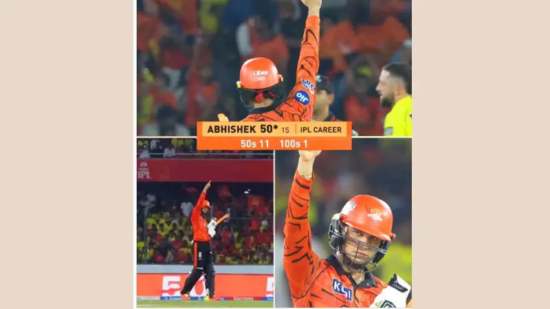 ముఖ్యంగా అభిషేక్ శర్మ తన విధ్వంసకర బ్యాటింగ్తో స్టేడియాన్ని హోరెత్తించాడు. కేవలం 15 బంతుల్లోనే హాఫ్ సెంచరీ మార్కును అందుకుని, ఐపీఎల్ చరిత్రలో అత్యంత వేగవంతమైన అర్థశతకాల జాబితాలో చేరిపోయాడు.
