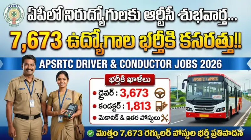 APSRTC recruitment 2026: 7,673 ఉద్యోగాల భర్తీకి కసరత్తుఆంధ్రప్రదేశ్ ప్రభుత్వం అమలు చేస్తున్న స్త్రీ శక్తి పథకంలో భాగంగా ఏపీఎస్ఆర్టీసీ (APSRTC) కీలక నిర్ణయాలకు సిద్ధమైంది.