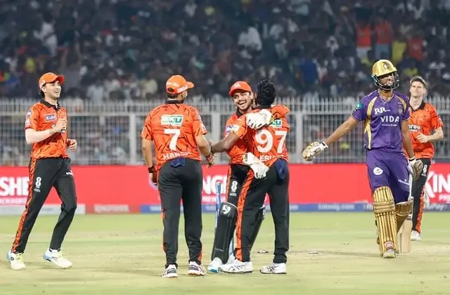 SRH team celebrating victory against KKR in IPL 2026 at Eden Gardens