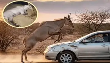 వేగంగా వస్తున్న కారును నీల్గాయ్ ఒక్కసారిగా ఢీకొట్టి అద్దాన్ని పగలగొట్టి లోపలికి దూసుకువచ్చింది. ఈ ప్రమాదంలో ముందు సీట్లో తల్లి ఒడిలో కూర్చున్న నాలుగేళ్ల చిన్నారి తీవ్రంగా గాయపడింది.