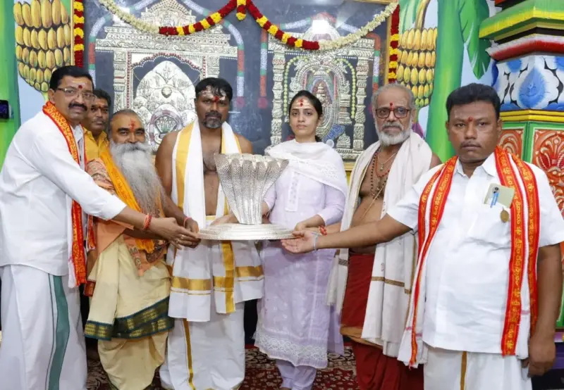 ఆలయ ప్రాంగణంలోని ఆశీర్వచన మండపంలో జరిగిన కార్యక్రమంలో దాతలు ఈ వెండి నాగాభరణాన్ని అమ్మవారి ఆలయ ప్రధానార్చకులు విజయస్వామి, ఉప ప్రధానార్చకులు ఎం. శివశంకరయ్య, పర్యవేక్షకులు గంజి రవి మరియు ఇన్స్పెక్టర్ కె. మల్లికార్జునలకు అందజేశారు. విరాళం స్వీకరించిన అనంతరం, ఆలయ అధికారులు దాతలకు అధికారిక రశీదును అందజేశారు. వేద పండితులు వారికి వేదాశీర్వచనం చేసి, శ్రీస్వామి అమ్మవార్ల శేషవస్త్రాలు మరియు ప్రసాదాలను అందజేసి గౌరవించారు.