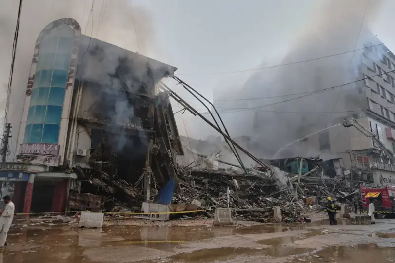 పాకిస్తాన్ దక్షిణ ఓడరేవు నగరం కరాచీ (Karachi) లో ఆదివారం అగ్నిమాపక సిబ్బంది దాదాపు 24 గంటల పాటు శ్రమించి బహుళ అంతస్తుల షాపింగ్ ప్లాజాలో సంభవించిన మంటలను ఆర్పారు.