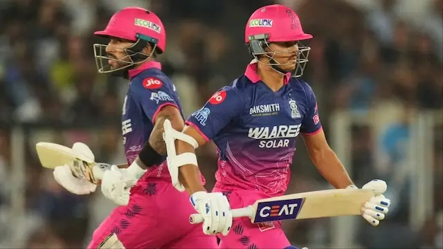ఇన్నింగ్స్ ఆరంభం నుంచే రాజస్థాన్ ఓపెనర్లు యశస్వి జైస్వాల్ మరియు 15 ఏళ్ల యువ సంచలనం వైభవ్ సూర్యవంశీ గుజరాత్ బౌలర్లపై విరుచుకుపడ్డారు. వీరిద్దరూ కలిసి పవర్ప్లేలో కేవలం 6 ఓవర్లలోనే 69 పరుగులు జోడించి ఇన్నింగ్స్కు అదిరిపోయే పునాది వేశారు. వైభవ్ సూర్యవంశీ 18 బంతుల్లో 31 పరుగులు (5 ఫోర్లు, 1 సిక్సర్) చేసి రషీద్ ఖాన్ బౌలింగ్లో అవుట్ అయ్యాడు.