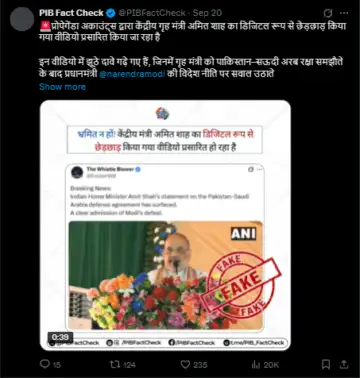 پی آئی بی فیکٹ چیک نے تصدیق کی کہ یہ ویڈیو ڈیجیٹل طور پر ایڈیٹ شدہ اور فرضی ہے۔