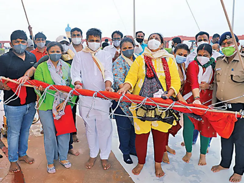Unfurling of the flag on the temple has been a tradition in Somnath since the day it was opened to public. The temple top is at a height of 155 feet from land, hence the unfurling was always a difficult task. According to Somnath Trust PRO Dhruv Joshi, well-trained temple staff used to climb atop the temple and unfurl the flag cautiously on behalf of worshipers. Since the task was difficult and risky, the temple trust had taken a Rs 1 crore insurance for the staff unfurling it.
